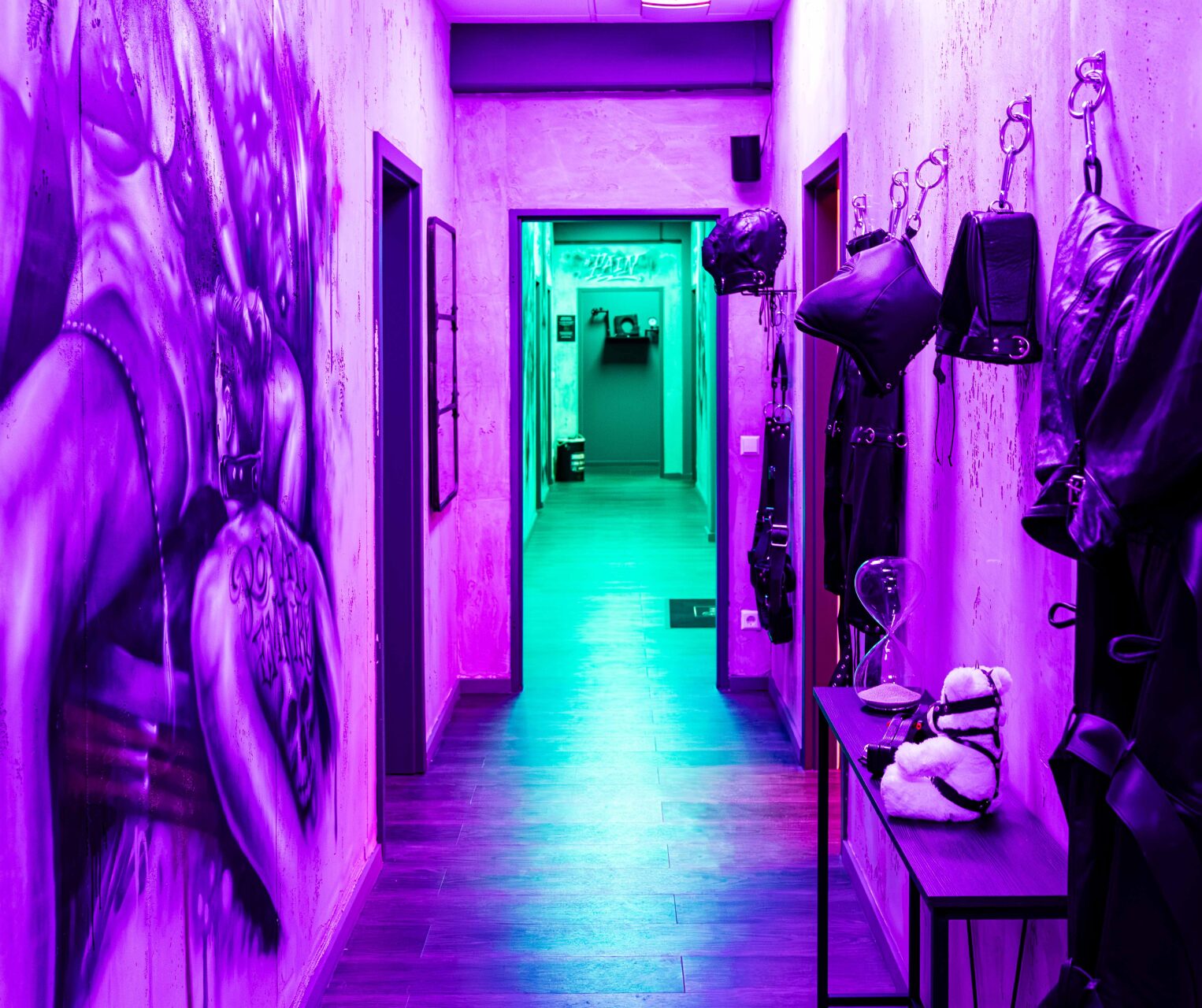 Die Räume wirken wie handgefertigte Werkstätten der Lust – jedes Möbelstück ist ein Werkzeug und jedes Detail bewusst platziert.