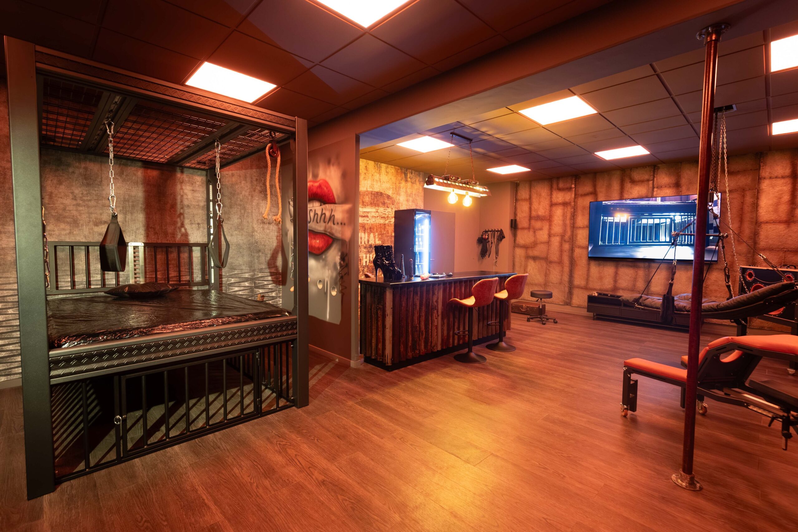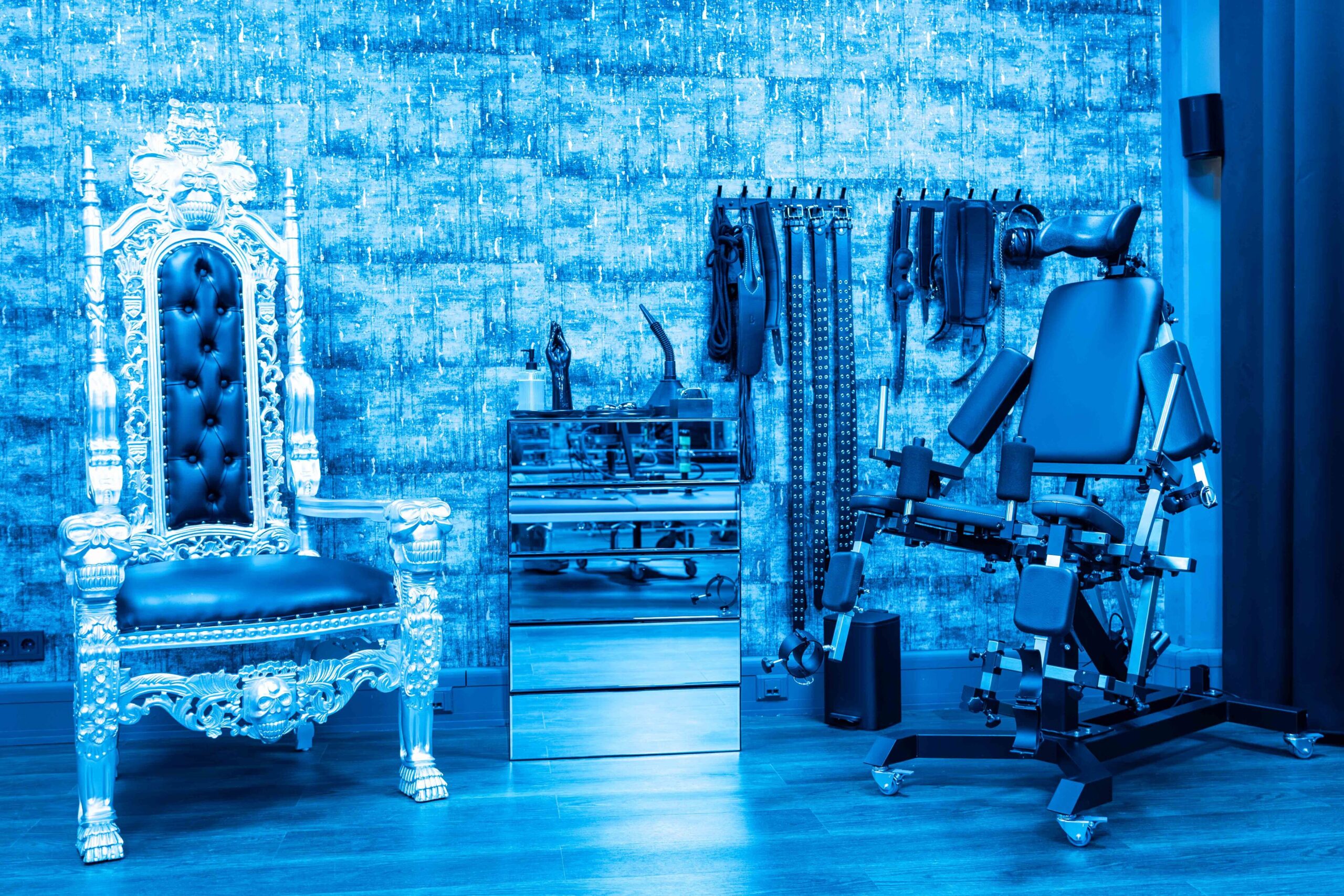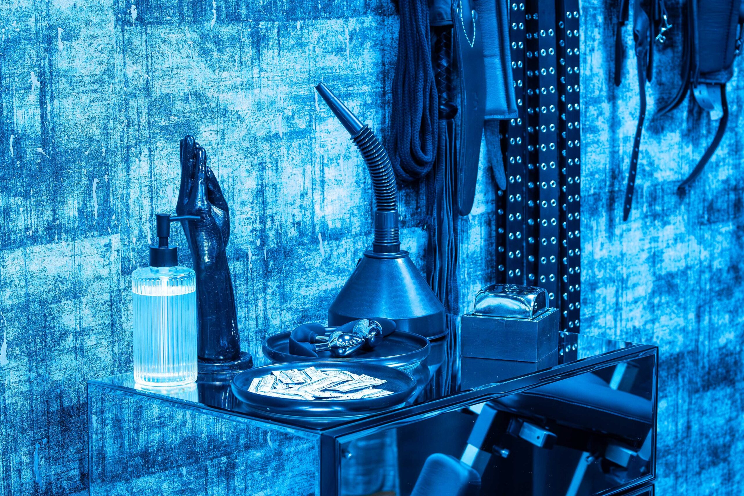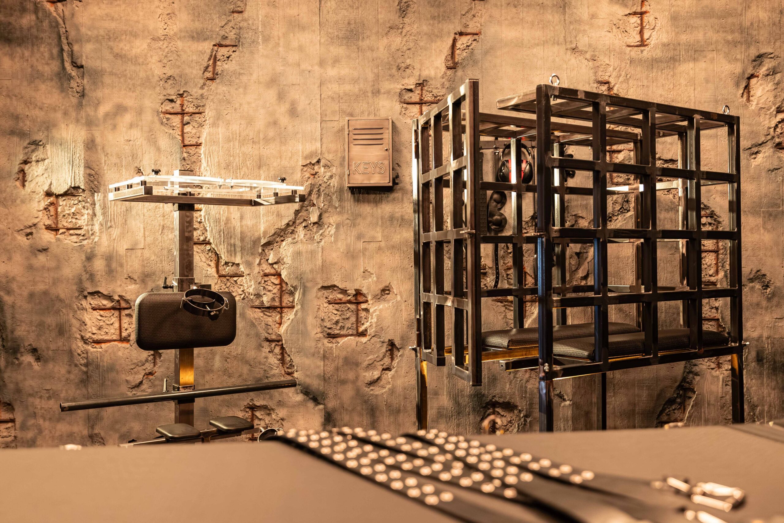 Die Räume wirken wie handgefertigte Werkstätten der Lust – jedes Möbelstück ist ein Werkzeug und jedes Detail bewusst platziert.