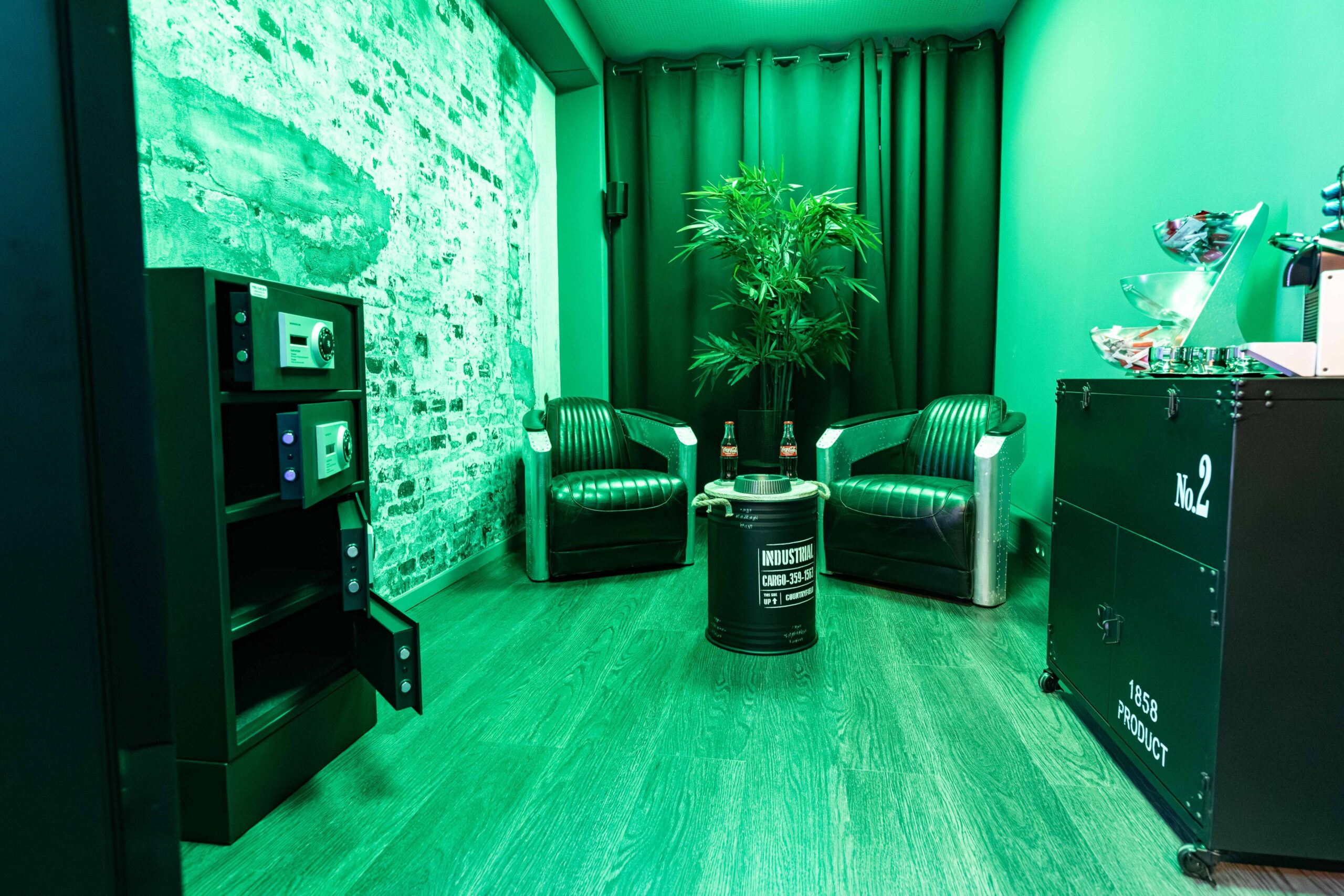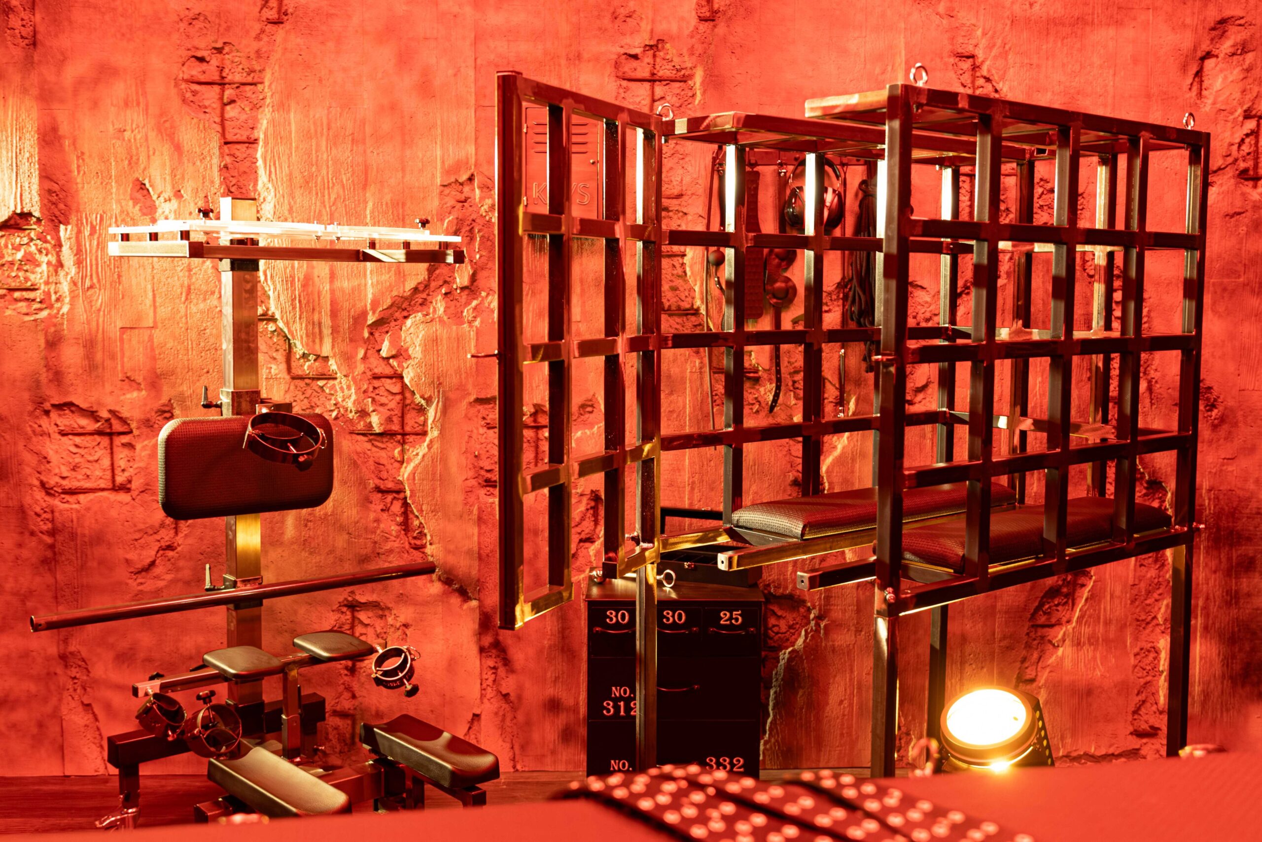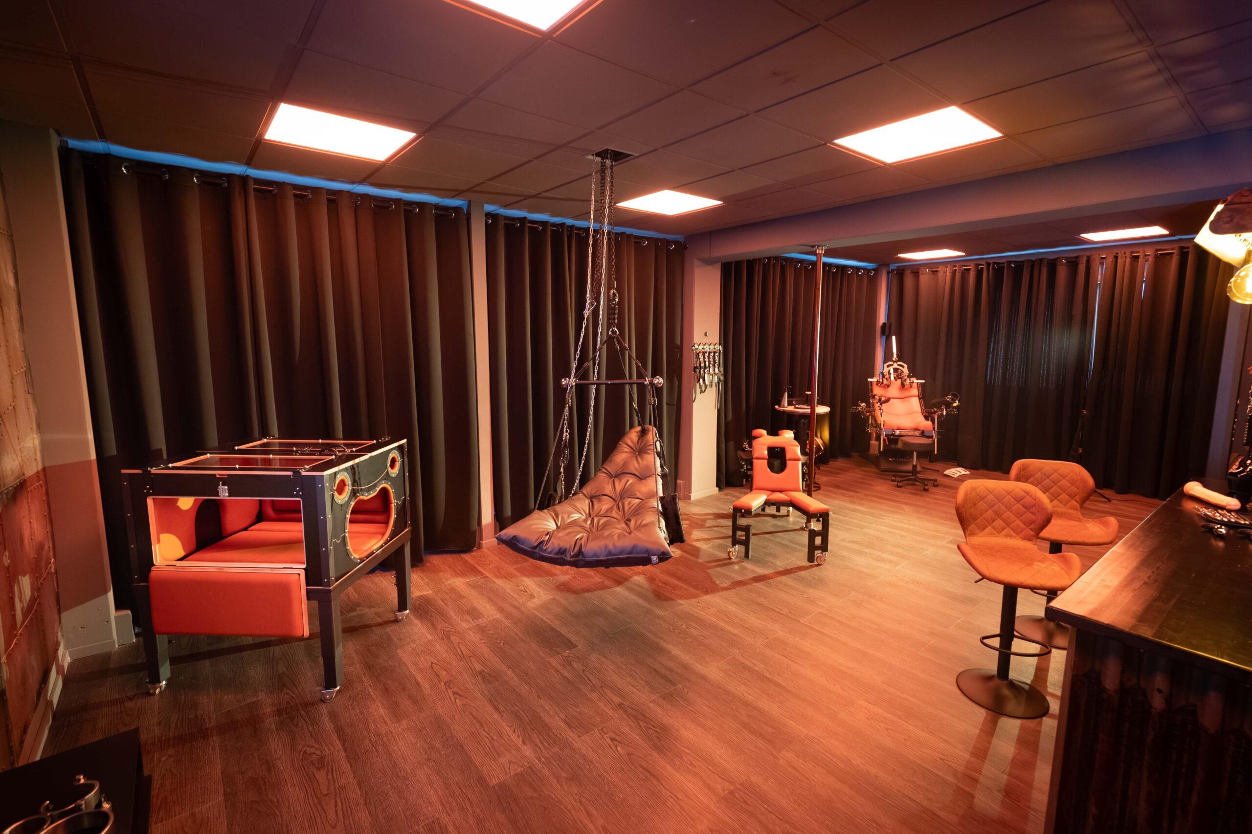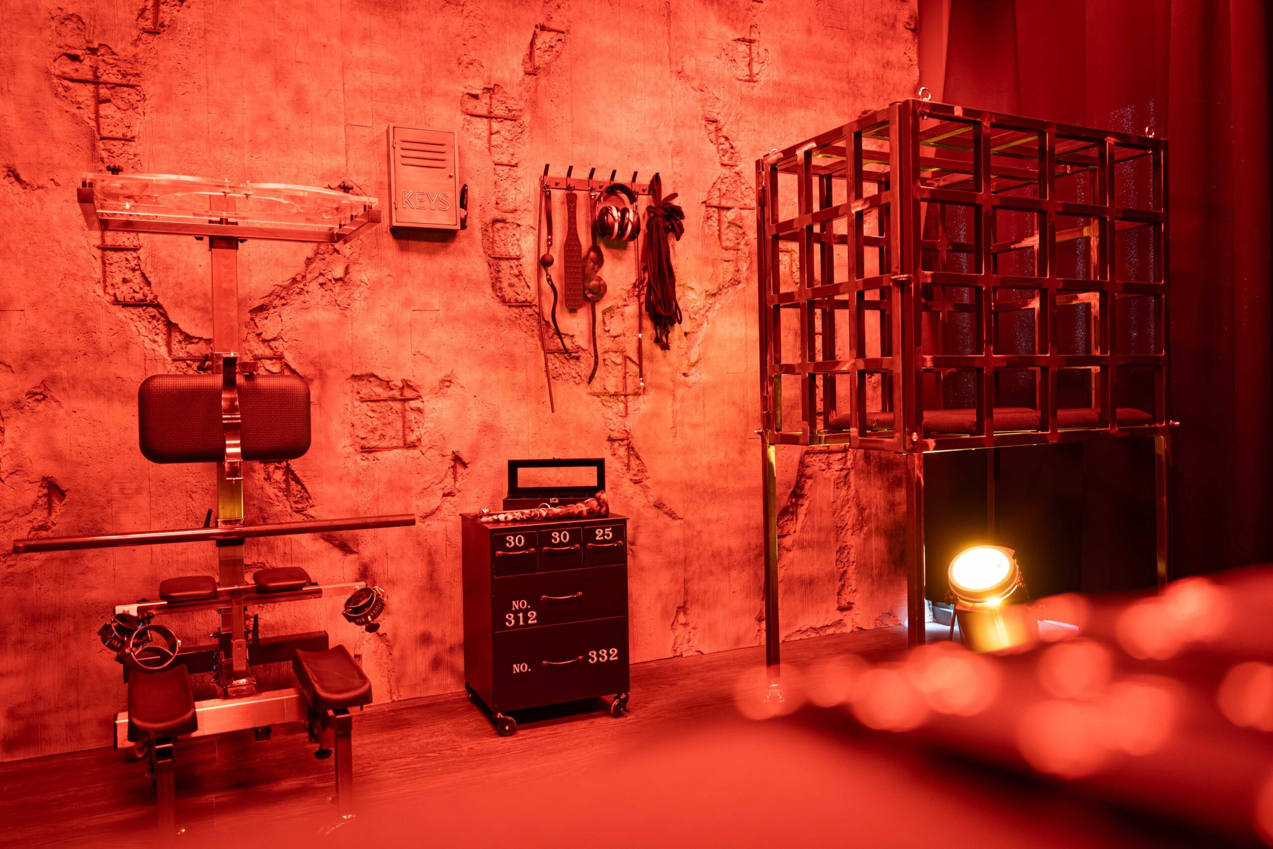 Die Räume wirken wie handgefertigte Werkstätten der Lust – jedes Möbelstück ist ein Werkzeug und jedes Detail bewusst platziert.