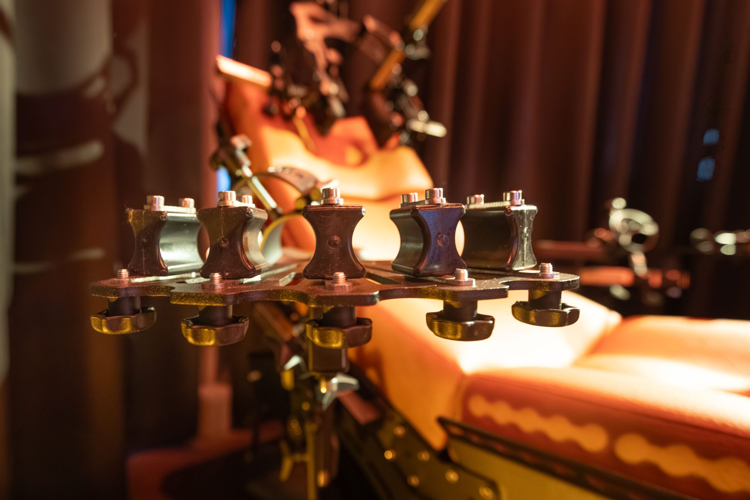 Bondageliegen und Stühle, deren Mechanik Präzision und Kontrolle ermöglicht.