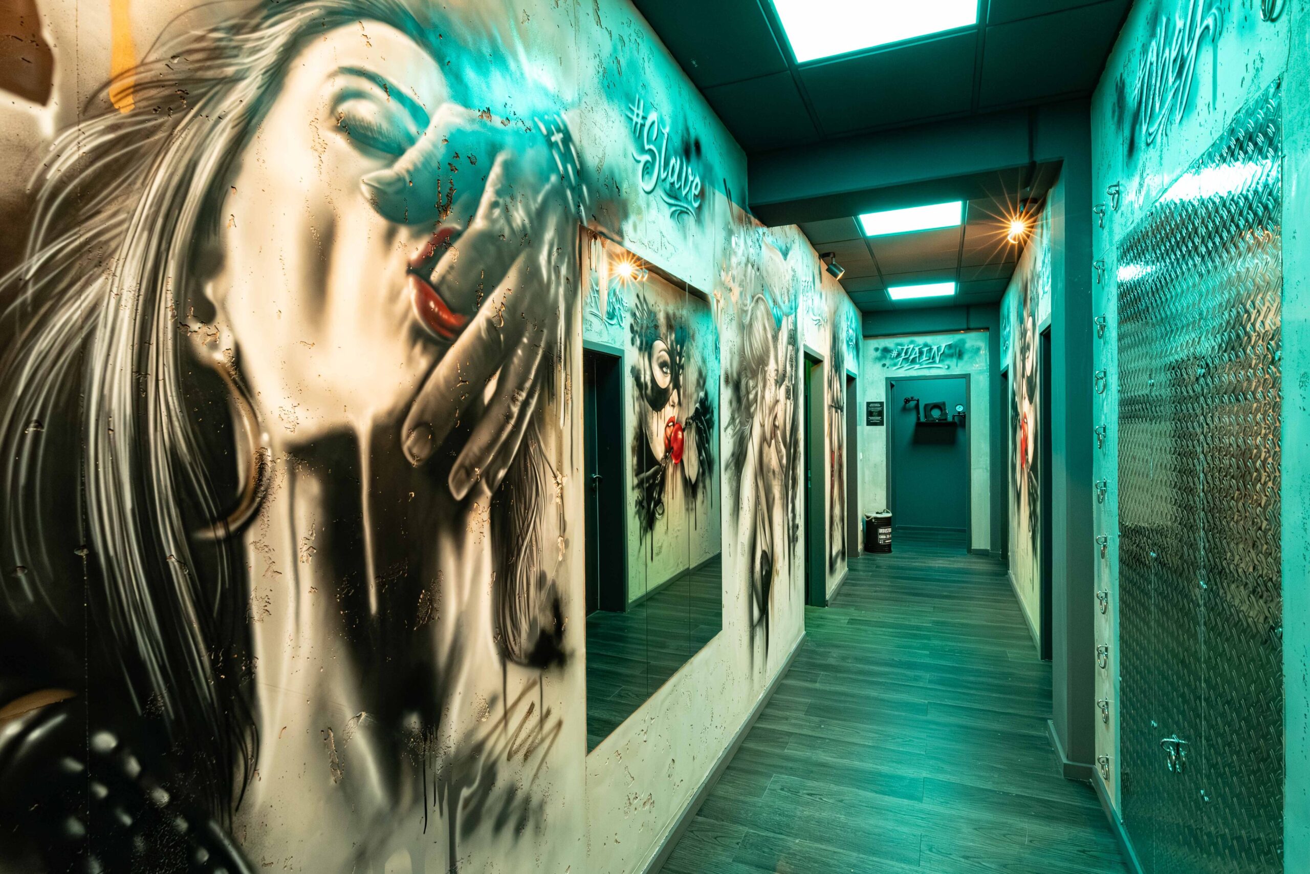 Hier wird der Übergang zum Erlebnis. Beton, Licht und Kunst verschmelzen zu einer Szenerie voller Energie – roh, ästhetisch, ungezähmt. Jeder Schritt durch diesen Raum ist ein Moment zwischen Kontrolle und Kreativität, zwischen Macht und Ausdruck.